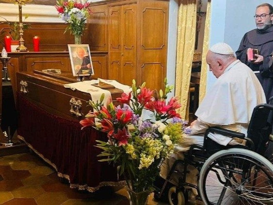 Antes do encontro dominical com os peregrinos, o Papa saiu do Vaticano para ir à Igreja dos Santos 40 Mártires, onde o corpo do sacerdote franciscano está sendo velado. Francisco rezou diante do Padre Manuel Blanco, demonstrando seu respeito e gratidão pelo confessor que o acompanhou por tantos anos.